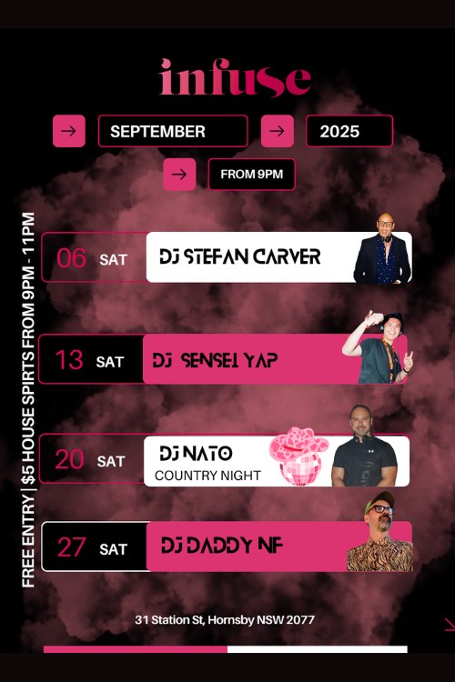 Part of the Hornsby Railway Hotel, Infuse Nightclub has been a tradition in the Hornsby district for decades and today the legacy continues with some of the best DJs in Sydney playing the music you love, including the latest top 100 tunes, retro classics and your favourite requests.
